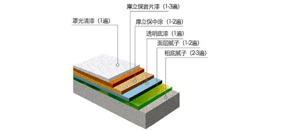 摩立保巖片漆是由環(huán)保型高分子乳液聚合物和能構成仿石材紋理的天然大理石骨料、復合巖片、助劑等材料組成的水性厚質涂料,經(jīng)噴繪的成品干結固化后堅硬如石,外觀如天然石頭一般自然、穩(wěn)重、氣派,是一款耐候性好、仿石材真實性極強、各種性能均為優(yōu)異的外墻涂料,適用于各種住宅、酒店、別墅和高檔寫字樓等建筑物墻體的裝飾和保護。